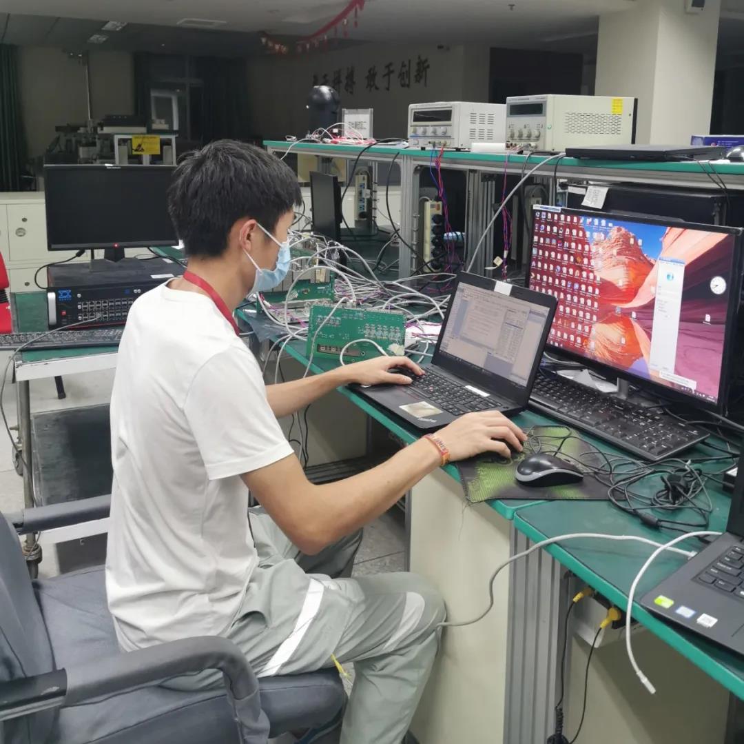 項目組軟硬件工程師黃仁果、梁暉、肖霞、劉鵬飛、李孝富等,為了保障項目外出人員產(chǎn)品聯(lián)試的順利進行,與現(xiàn)場人員隨時保持溝通,全力以赴做好技術(shù)支持工作。為了保證系統(tǒng)聯(lián)試進度不受影響,他們經(jīng)常以實驗室為家,通宵達旦、探索攻關,將聯(lián)試過程中出現(xiàn)的故障現(xiàn)象在實驗室反復推敲,第一時間拿出優(yōu)化解決方案,為總體單位提供了良好的技術(shù)支持與服務,他們用一個又一個電訊號,一行又一行代碼書寫著無悔青春。